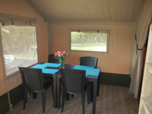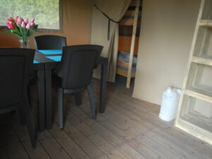 Wij hebben sinds seizoen 2025 drie compleet ingerichte safaritenten in de verhuur.